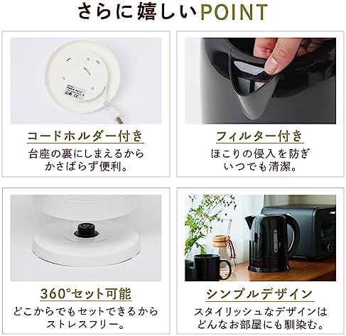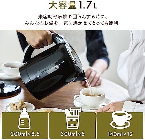 アイリスオーヤマ(IRIS OHYAMA) アイリスプラザ 1.7L たっぷり大容量 空焚き防止機能 中身が見やすい 自動 スイッチOFF お手入れ簡単 KTK-017 ブラック