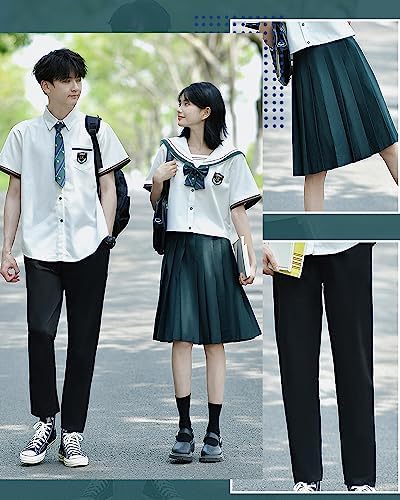 [JIURUN] 女子高生 セーラー服 学院風 カップルスーツ jk 制服 ロングスカート ロリータ ワンピース 演出服 半袖シャツ リボン付き 学生卒業服 サマースーツ 高校生 学生 制服 学園祭 文化祭 仮装 本格制服 コスチューム ハロウィン
