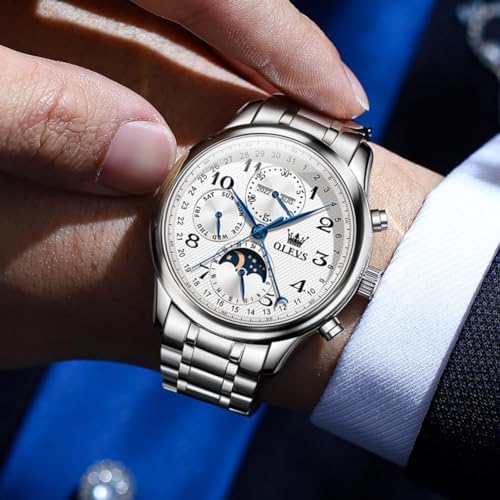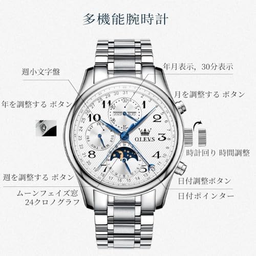 OLEVS 腕時計 メンズ 人気 機械式 うで時計 自動巻き 日付 カレンダー 文字盤 ステンレス鋼 夜光 紳士 時計 ホワイト