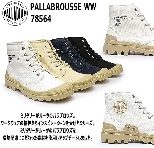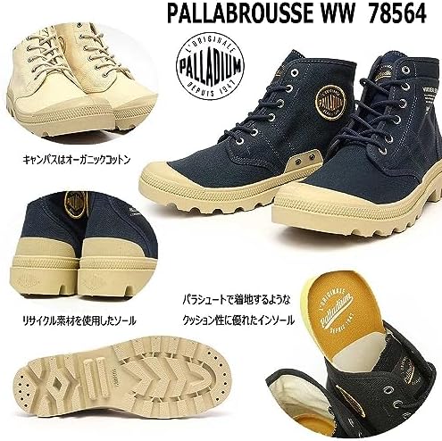 Amazonマーケットプレイス保証は、出品者が販売および発送する商品をご購入の場合に適用されます。Amazonマーケットプレイス保証は、購入された商品のコンディションや配送を保証するものです。 ワークウェアの精神からインスピレーションを受けたシリーズ。●ミリタリーがルーツのパラブロウズを環境配慮にこだわった素材を使用しアップデートしました。●パラシュートで着地するようなクッション性に優れたインソールで履き心地抜群です。●幅、足入れ等・・・メンズ用としてはやや小さめのつくりです。レディース用としては標準からややゆったりしたサイズ感です。●素材:アッパー:合成繊維 アウトソール:ゴム底●全体の高さ:約17cm(本体12.0cm+ソール5.0cm)●重量:約487g(26.5cm片足)●生産国:ベトナム●パラディウム シューズ ハイカット スニーカー ユニセックス パラブロウズ 黒 ブラック 白 クリーム ホワイト サハラ ベージュ ムーンインディゴ ネイビー タウンシューズ お揃い ペア●78564●PALLADIUM ・サイズ換算値---23.5cm(USA5.5)、24.0cm(USA6.0)、24.5cm(USA6.5)、25.0cm(USA7.0)、25.5cm(USA7.5)、26.0cm(USA8.0)、26.5cm(USA8.5)、27.0cm(USA9.0)、27.5cm(USA9.5)、28.0cm(USA10.0)、29.0cm(USA11.0) - 1,116,041位ファッション ( ) - 14,288位