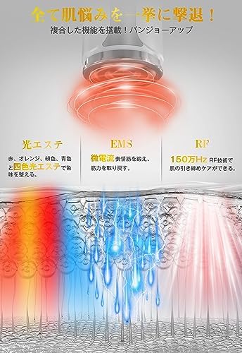 🎁【多機能美顔器・一台16役】革新的なテクノロジーを採用しており、アップグレードされました多機能美顔器です。イオン導出、イオン導入、EMS微電流、目元ケア、クール、(赤/緋/オレンジ/青)4つ色光LED、RF、温冷、3種類振動など、全て欲しい機能を一台に総合し、合計16役で毎日のケアを新感覚で!クリーニング、イオン導入、リフトアップ、RF、目もと、クールモードと、一台で6種類モードを揃え、複合機能で肌の様々なニーズに満たし、初めての方でも自宅でプロなケアを実現! 🎁【150万Hz高周波・温冷ケア・三段階調整】従来品より効果高い150万Hzに達する高周波を照射できるため、肌の奥まで届いて、じんわりと温めることで、肌のハリや弾力を再度取り戻します。41℃温熱ケアのほか、約14℃冷感ケアもでき、猛暑で日焼けの肌を冷やし、健康な肌状態を保ちます。三段階調整でき、レベルを選んでふさわしいケアプランに合わせて肌管理など行います。初めての方は、一番下のレベルから始めることをお勧めします。 🎁【EMS微電流・イオン・4光LED】顔にEMS微電流を流して輪郭を細くして小顔を実現。イオン導入で美容成分を深層まで閉じ込めさせ、高浸透率で肌のうるおいを与え、手塗のほうより効果倍増。イオン導出で汚れを取り出して肌のトーンをアップさせ。4光LEDも付き、肌の透明感を高めます。毎日10分間のデイリーケアを積み重ねれば、28日間で確実な効果を実感できます。毛穴ケア、乾燥肌ケアなど、16役の効果をこの美顔器一台で実現。毎回のケアをお好みのモードから始めるメモリー機能や、過度使用を防ぐタイマー機能も付き、使い心地いい。 🎁【USB充電式・持ち運び便利・軽量】USB充電式で場所を取らずどこでも充電できます。スマートフォンとほぼ軽量、重量がわずか150gぐらい、コンパクトかつ超軽量で、持ち運びに便利、お自宅の使用はもちろん、旅行先や出張先、更に海外でも手軽にスキンケアできます。 🎁【上品な一品・品質保証】コントラストの美しい色組み合わせ、どんなインテリアにも溶け込むスッキリとしたデザインで、家族、友達、恋人、上司など大切な人に喜ばせるギフトに間違いない。誕生日プレゼント、ホリデーギフト、記念日、バレンタインデー、賞品など大変お勧めです。ご使用中に何か疑問がございましたら、ご気軽に弊店カスタマーサポートまでお問い合わせください。セット内容:①RF美顔器本体×1、②USB充電ケーブル×1、③固定用リング×1、④日本語取扱説明書×1 - 10,844位ビューティー ( ) - 39位