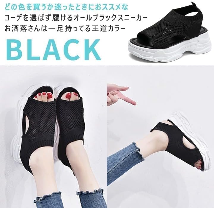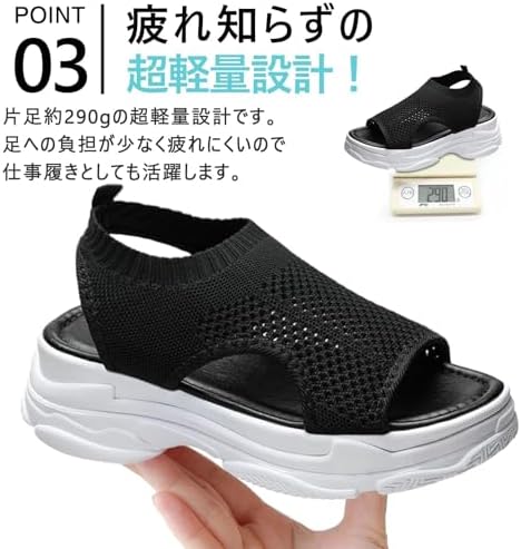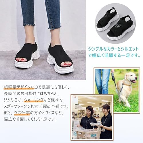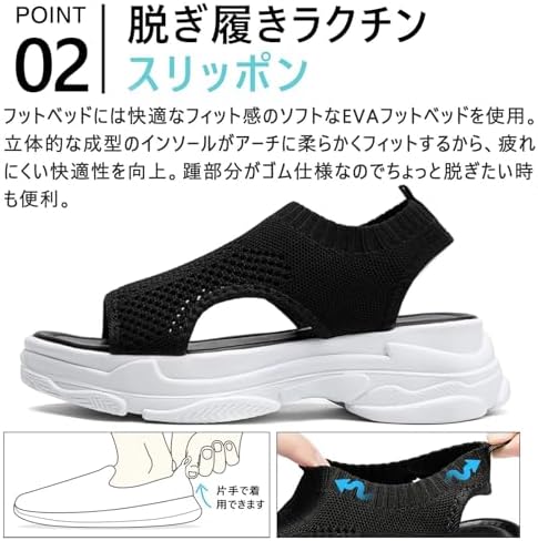 [MERPHINE] スポーツサンダル レディース ニット メッシュ 厚底 オフィス サンダル 夏 通気 軽量ウォーキング 歩きやすいおしゃれ オシャレ