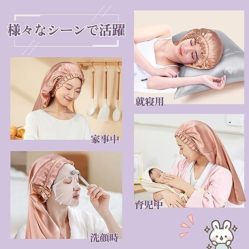 [OLESILK] ナイトキャップ ロングヘア用 筒型 ヘアキャップ 二重生地 ヘアキャップ 保湿美髪 就寝用 レディース プレゼント