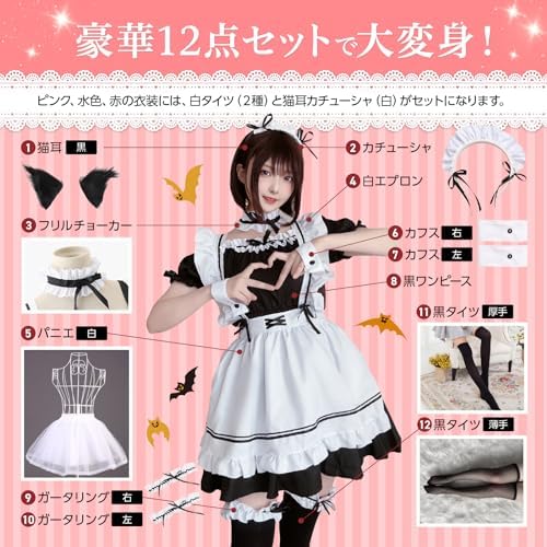 [MINCOS] メイド服 コスプレ 豪華12点セット 猫耳 コンカフェ メイド喫茶 衣装 レディース