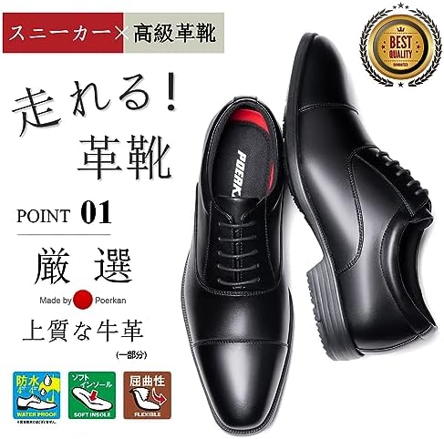 [Poerkan] ビジネスシューズ メンズ 走れる 本革 ビジネス スニーカー 革靴 軽量 歩きやすい 紳士靴 通気 ウォーキング ドレスシューズ 25.0cm~28.5cm