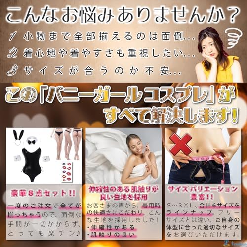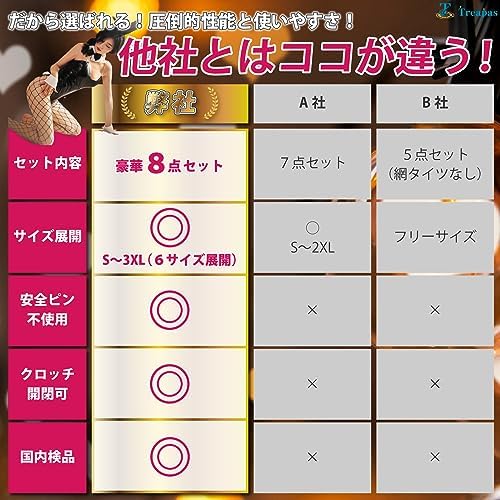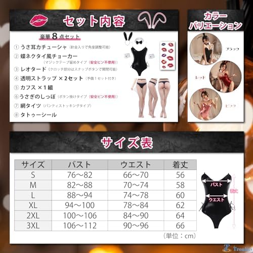 [Treapas] バニーガール コスプレ 8点セット 安全ピン不使用 クロッチ開閉可能 6サイズ展開 大きいサイズ セクシー 女装 コスプレ