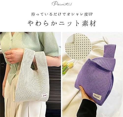 [VNGOLERRY] トートバッグ ニットバッグ 無地 レディース おしゃれ ニットトート サブバッグ ハンドバッグ ミニバッグ トレンド カジュアル シンプル エコバック 編みバッグ