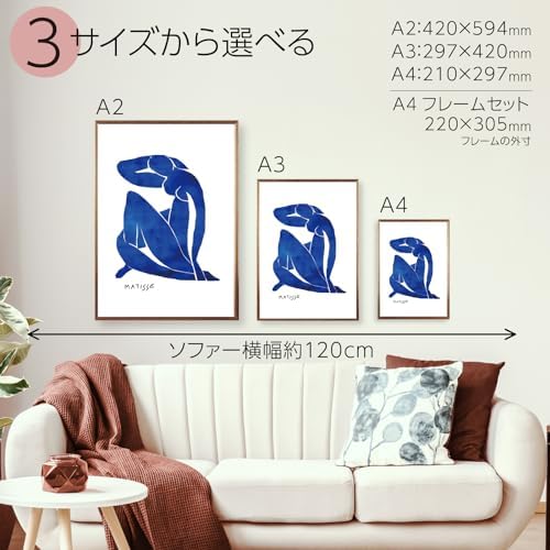 アンリ マティス ポスター アートポスター ブルーヌード ドローイング A4 フレーム付 SQIP (スキップ) 青色 シンプル 絵画 絵 北欧 おしゃれ インテリア 019 (A4(フレームセット))