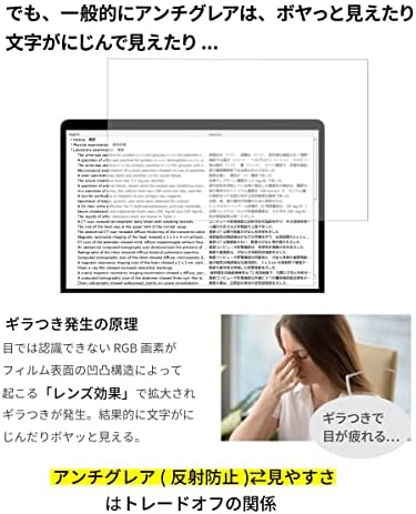 【サイズ】 16.0インチ (16:10) 344.5x215mm 【対象機種】 ASUS用 エイスース用 Vivobook 16X M1603QA X1603ZA / DELL デル Inspiron 16 / HP エイチピー ENVY Laptop 16 / HUAWEI用 ファーウェイ用 MateBook D / Lenovo レノボ IdeaPad Gaming 370i Slim 570i Legion Pro 5i LOQ 16IRH8 ThinkPad E16 Gen 1 / MSI Vector-GP68HX / マウスコンピューター DAIV Z6 G-Tune P6 / LGエレクトロニクス LG gram +view 16MR70 16MQ70 など 16インチ 16:10型 ノートパソコン モバイルディスプレイ 【反射防止】 低干渉対策を施した高透過率のPETフィルムです。一般的なアンチグレアフィルムより透過率90%で色付きやも曇りも少なく綺麗な透明感。 【高精細】 フィルム表面にミクロな網目状組織を形成させることで、文字がにじんで見えたり、ギラついたりしないにも関わらず高い反射防止効果を有するフィルム。世界中を探してもどこにもない日本の中小企業の底力がこのフィルムに集約されています。 【肌触りもスムース】 表面にフッ素コーティングを施しているので触った感触もスベスベしています。汚れが付着した場合はクリーニングクロスなどでサッと拭き取るだけで綺麗を保てます。 硬度2Hでスクラッチ(傷)に強く、スクリーンの擦り傷防止用にフィルムを貼っているだけでも安心です。 【気泡軽減】 ホコリの混入は大敵です。 大きなサイズのフィルムは特に気泡が入りやすく貼り付け難易度が増す傾向にありますが、本フィルムでは特殊シリコン樹脂を使用しており自然にエアが抜けて液晶画面に気泡が残りにくい特性を兼ね備えています。 説明書を見ながら貼れば初めての人でも大きな失敗もなくキレイに貼れるアクセサリーも付属しています。 - 28,803位パソコン・周辺機器 ( ) - 145位