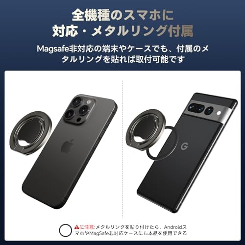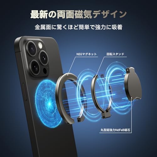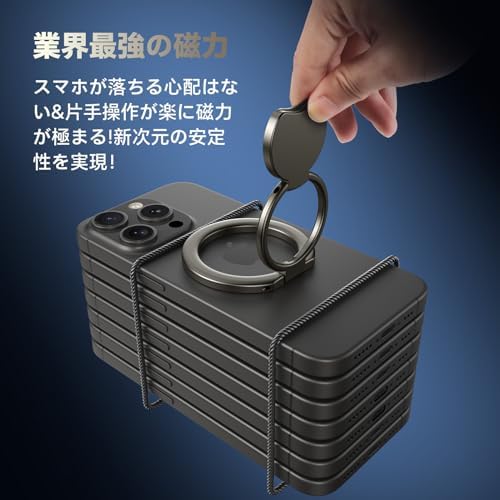 マグネットの王Bolvunes スマホリング MagSafe対応 スマホスタンド 超強両面マグネット バンカーリング 横縦両立 スマホ落下防止/角度調整可能 磁気増強メタルリング付き iPhone Androidなど全機種対応H3