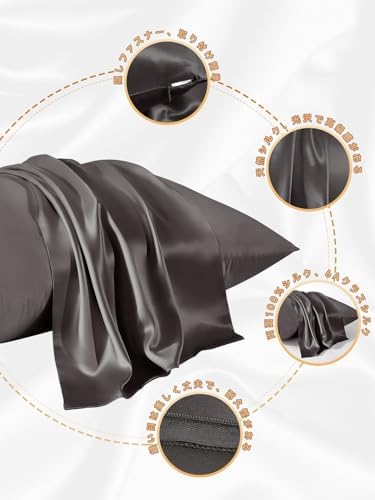 THXSILK 枕カバー シルク 隠しジッパー 最高グレード6A OEKO認証済み 100%シルク 両面 洗える 美髪・美肌 敏感肌 睡眠サポート 寝癖軽減 静電気防止 防ダニ・抗菌 光沢 ギフト 贈り物 四季適応 一枚 (50*70cm・ ダークグレー)
