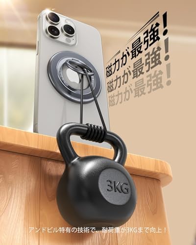 🧲【吸着力3KG・スマホが絶対落ちない】スマホの安全はAndobilが一番大事にしています。従来型によくある「磁力が弱くてスマホが落ちやすい」問題に対して、Andobilのプロダクトマネージャーは業界最高レベルのネオジム磁石(N55)を20個も内蔵し、低コスト磁石使用の一般タイプのマグネットリングより吸着力を60倍以上に向上しました。Andobilが選んだ磁石の強さは、普通の磁石(N52)の10倍とされて、30~35Nの磁気吸着力があります。強力な磁力でどんな状況でもiPhoneを少しも揺らさずにキープすることができ、ずれ落ちる心配なく快適です!🧲また、伝統的な粘着式スマホリングと違って、マグネットタイプなので取り外しが簡単。テープ跡や糊残りを気にせずお使いのiPhoneをきれいな状態でご利用いただけます。また、MagSafe対応ケースであればiPhone 15 /14 /13 / 12シリーズにケースをつけたままでも使用できます。 🧲【両面マグネットで超便利】「快適な暮らし」を考えて、Andobilのプロダクトマネージャーは3年間努力して、ようやく業界初の両面マグネット式のスマホリングを開発できました。スマホとの吸着面は耐荷重が3000Gで、もう片側の耐荷重が2600Gで、しっかりと安定します。普通の片面磁石と比べて、両面マグネットなので、マグネット式の車載ホルダー、冷蔵庫、洗濯機、ジムの設備など磁力のあるものに貼り付けます。更に、キッチンやお風呂の壁など磁力のないものには付属品のメタルリングが貼り付けられましたら、磁力化にして貼り付けることが可能です。この両面マグネットで、どこでも、いつでも両手を解放して、好き放題にスマホでTiktok、YouTube、INSなど楽しめましょう。 🎉【究極の使用感。さすがPro。】スマホリングをもっと楽しく利用することを目指し、AndobilはようやくMagRing Proの開発に成功できました。只今、MagRing Proの特徴を一部分紹介します。🎉①最強のヒンジ部-スタンド機能「緩い」と「ガラガラ」などの問題一気に解消します。当社のMagRing Proは当社独自技術のダンパーヒンジ採用して、200000回以上360°回転と上げ下げテストをクリアし、経年劣化によるスタンド機能「緩い」問題を解決できた。🎉②更に使いやすい-「力」のバランスを整え、安定感を確保した共に、市販の製品よりリングの立てが更に滑らか、マニキュアしたや爪が伸びていない人でも、簡単にリングを立てる。🎉③史上最薄型-商品の厚さは3㎜で、重さが25gまで史上最薄型に改良成功、スマホに付けても全然違和感ない。また、ダブルRingの構造で、内側のパーツだけ回るので、スマホ本体に傷が付くことがなく、スマホを卓上に水平に置いてもスマホのレンズにぶつからなく安心してご利用いただけます。🎉簡単な商品ですが、限界ギリギリまで最善を尽くすことが大切です。 👍【快適なタッチ感・片手操作】Andobilは快適感を重視しています。直径24MMのリングにはTPE裏地が特別に設計されているため、快適で安全なグリップが可能で、指にぴったりとフィットし、自撮りや長時間使用に指が痛くなる問題を徹底的に解決しました。また、重量わずか25gで、従来型よりもっと軽量になり、ケースをつけて重たくなく、画面に触れる範囲も広くなり、片手操作が楽になります。 📱【全てのスマホとケースに適用・ワイヤレス充電対応】このマグネット式のスマホリングは全ての携帯の機種に対応できます。Magsafe機能を搭載したiPhone 15/14/13/12シリーズはもちろん、iPhone 11 Pro Max /11 Pro / XS Max / XS / XR / X / 8 Plus/ 8 / 7 Plus / 7 / 6S / SE第二世代 / SE または Sony Xperia 、SHARP AQUOS、FCNT arrows、Samsung Galaxyなど磁気を帯びないスマホとケースは付属品のメタルリングを貼れば、iPhone 15/14/13/12シリーズのようなマグネット機能を持ち、簡単に使用することができます。また、マグネット式のスマホリングなので、ワイヤレス充電の際に、簡単にスマホリングを取り外すことがかのうです。スマホのワイヤレス充電に干渉せず、快適にご利用いただけます。 ❤【高品質・5年間安心保証&終身サービス】数万回以上の使用に耐えることテスト済みで耐久性が安心できます。また、表面は錆びない独特なコーティングで美しい光沢が長持ちます。また、スマホリングは5年間品質保証と終身サービス付き、製品に問題が発生した場合は、例え箱潰れ、付属品破損でも全額返金または無料で商品交換を対応し、お客様のニーズに合わせ、12時間以内に返事致します。(ちょっとした自慢ですが、弊社のアフターサービス対応には多くのお客様が好評しています。詳しくは店舗の評価をご覧いただけますととても幸いです) - 1,266位家電&カメラ ( ) - 16位
