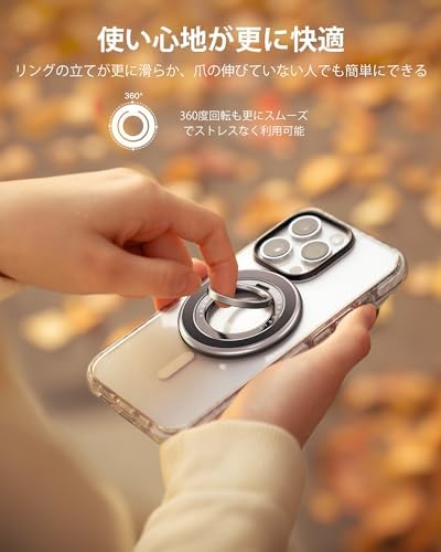2024最高傑作&MagRing ProAndobil スマホリング Magsafe マグセーフ リング 落下防止 バンカーリング マグネット両面マグネット・超强磁力 スタンド機能&緩まない スマホ リング 360度回転 角度調整可 簡単着脱 マグネットリング 薄型 高級合金素材 携帯リング 磁石 iPhone Androidに対応 ナチュラルチタニウム