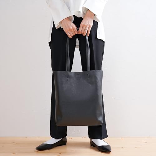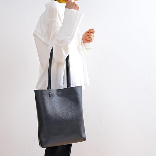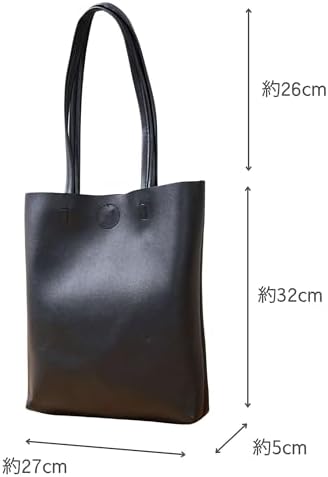 [Decorative] トートバッグ シンプル 無地 A4 縦型 縦長 エコレザー 合皮 男女兼用 ビジネス 通学 買い物 面接 シンプル ボタン 内ポケット有り [デコラティブ]