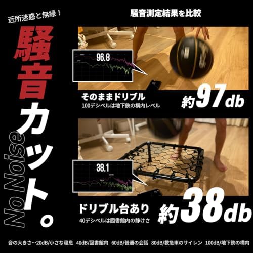 【プロバスケットボールチーム監修】🏀B.LEAGUE所属「ライジングゼファーフクオカ」監修。住宅環境や季節、天候に左右されることなく育成選手たちがいつでもどこでもドリブル練習に励むことが出来るように開発されました。「ボールを触っているだけじゃ物足りない」「自宅で出来ればいいのに・・・」という想いを形にした「いつでも」「どこでも」ドリブルができるトレーニング器具です。 【騒音は驚きの"60デシベル"減!】🏀ドリブルの騒音値を約38デシベル(睡眠に影響を与えない騒音値は35~40デシベル)にまで抑制。集合住宅でも迷惑を掛けずに自主練に打ち込むことができます。 【"ながら"練習で感覚を鍛える!】🏀テレビや映画を見ながら、会話をしながら、意識の外でもドリブルを維持して感覚を鍛える。鏡に向かってのドリブルで視線やスタンスを確認する。利き手ではない手のハンドリングをひたすら訓練する。など、様々な反復練習を行うことで苦手を克服!日中に基礎練習に費やす時間を応用技術・連携力の向上に充てることができます。 【デザイン・サイズ】🏀収納性やゴム張力調整の利便性に優れたスクエアデザイン(一辺50cm / 組立時高さ19cm)。組立・解体に特殊な工具は必要なく、付属の六角レンチだけで50cm×50cm×4cmの形で収納が可能です。(重量4.3㎏) 【ご注意・お願い】当商品のパッケージは環境への負担を配慮し工場出荷時の梱包を再利用しております。また、全ての商品を検品時に開封しておりますため、再梱包の跡がございます。あらかじめご了承ください。検品は行っておりますが、一部ネットに劣化がある場合がございます為ご使用前に一度ご確認ください。万が一ネットに劣化があった場合はショップまでご連絡ください。新しいものと交換させていただきます。その他商品について不備や破損があった場合は無償で交換・返金の対応を取らせていただきます。商品お届け後30日以内に注文履歴よりご連絡ください。