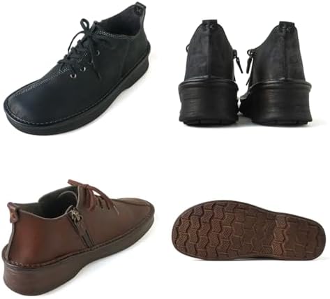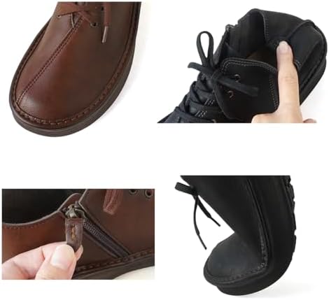 片足の重さ:260g(23.5cm基準)、ヒールの高さ:約5.3cm(インソール含む)、前底の厚み:約2.2cm(インソール含む) 紐を結び直さなくても大丈夫な、ファスナー付きのチャッカ―ブーツ。 素材は国産ヴィーガンレザーです。 靴は馴染むまで我慢するのが当たり前だと思っていませんか? 本革の構造を人工的に再現しているので、 合成皮革に比べてとても柔らかく伸縮性があり、 初めて履いた時から足に優しく馴染みます。 - 938,157位ファッション ( ) - 481位