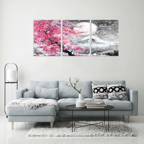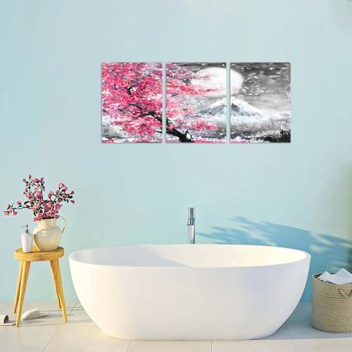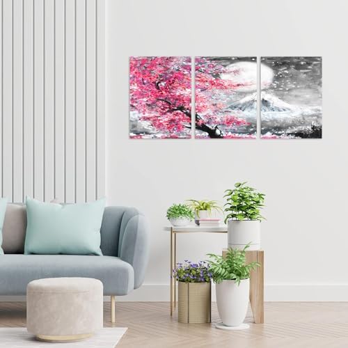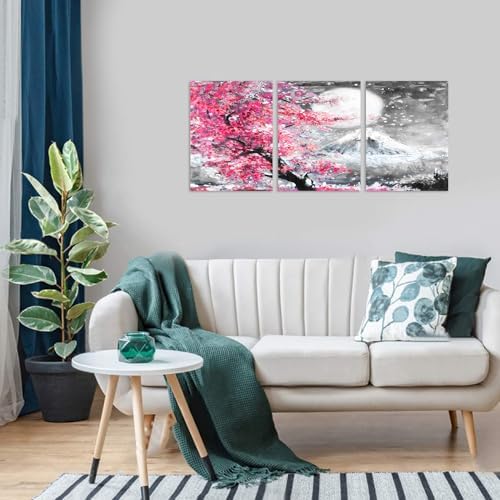 富士山 桜の絵 3枚 アートパネル モダン おしゃれ インテリア 壁飾り アートポスター HD印刷 玄関 風水 開運アート装飾絵画 壁掛け 完成品 木枠付き (30X40cmX3pcs, 富士山のポスター7)