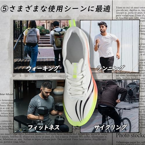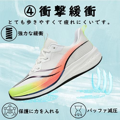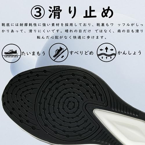 【超軽量】3D縫製技術で一体型のアッパーが、非常に軽い素材で作られているので、靴全体は軽くて、緩衝の効果は良いです。スニーカーは履き心地がいい。一体型の履き口が、伸縮性にも優れているので、着脱の便がよい。靴ひもは緩さを調節できて、とても良い貼り合わせができます、フィット感良し。 【通気性】スポーツシューズの通気性抜群、ニット素材で通気性も良く、さわやかな履き心地を.靴自体がしっかりしていて履いていて疲れません。靴裏もワッフルがしっかりあって、滑りにくいです.一体織りメッシュは、軽量、通気、速乾など機能が優れて、熱がこもるのを防ぎ、さわやかな履き心地を提供してくれます。 【耐久性】 耐久性が强いスニーカー、耐磨耗性は抜群、3cmのインヒール 歩き疲れや冷えの防止や、スポーツシューズの防音の効果は良いです、歩くと音が鳴がしない、クッション性もちゃんとあり、軽いので履きやすいです、シリーズ最高の機能性を実現したエアライトスニーカー. 【男女兼用】スニーカーのサイズは24.5 cm-27.5cmで、日本人の足に馴染む、程よく幅広甲高の足型を使用。スポーツシューズ豊富カラー展開、幅広いサイズ展開と普遍的なデザインは性別を問わずお使いいただけます。ファッション性の高い人気 メンズとレディースシューズ 【適用のシーン】適用対象:メンズ、レディース、中学生、高校生、大人、男性、女性、高齢者、アクティブシニア世代、シニア、ジュニア。アウトドアシューズとして、普段履き、ジョキングシューズ、トラベルシューズ、ウォーキングシューズ、ランニングシューズ、テニスシューズ、室内シューズ、スポーツシューズ、運動靴としてお使い頂ける万能靴です。 - 46,121位ファッション ( ) - 482位