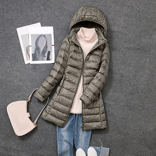 [Chenyoulan] ウルトラライト ダウンジャケット レディース フード付き ロングコート ライトアウター 暖かい コンパクト収納 ダウンコート 防風 ジャンパー インナーダウン 大きいサイズ 長袖 カジュアル 女性 防寒 秋冬 アウトドア 通学 通勤
