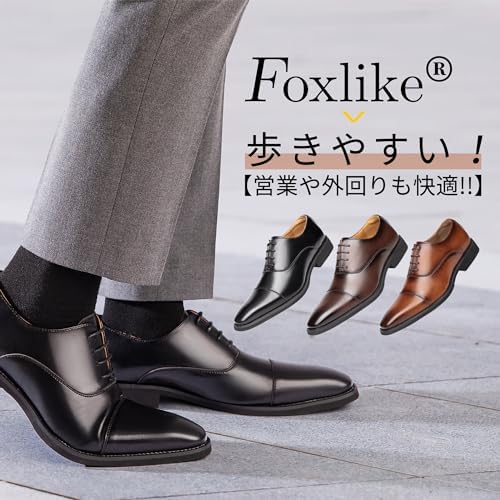[フォクスライク] ビジネスシューズ メンズ 歩きやすい 革靴 疲れない 高级紳士靴 内羽根 軽量 防滑 レスシューズ ストレートチップ 高級レザー フォーマル