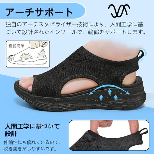 [ziitop] 厚底 スポーツサンダル レディース 歩きやすい ナースサンダル 美脚 スニーカーサンダル スリッポン ウォーキング オフィス 軽い ニットサンダル 疲れない 滑り止め おしゃれ 人気 御洒落