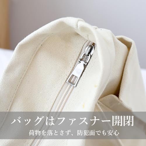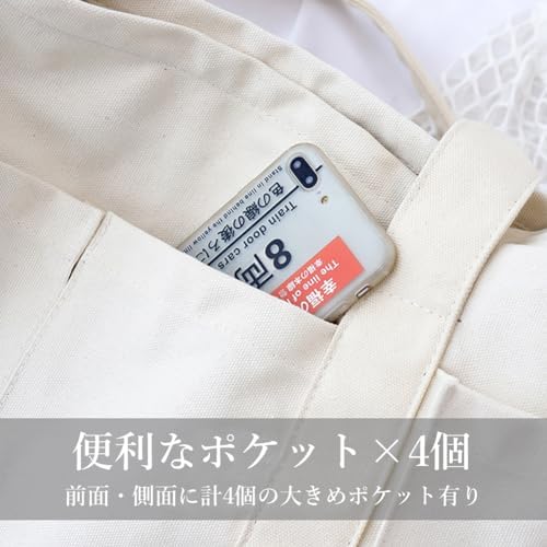 【サイズ】横幅(上)51cm 横幅(底)44cm 高さ34cm マチ15cm 持ち手高さ24cm 重量:約0.6kg 【素材】キャンバス地 【仕様】外側:オープンポケット×4 内側:オープンポケット×1 ファスナー開閉 裏地なし 【A4サイズも収納できる大容量】 A4サイズ の 雑誌 や 参考書 などを 収納 できる 便利 な 大きさ の キャンバスバッグ 。 開口部 は 大きく 開きます ので、 荷物 の 出し入れ も 楽々 行えます。 大きめ の ポーチ や ペットボトル 、 折り畳み傘 も 余裕 で 入る 大容量 タイプ なので、 デイリー 使い に 最適 ! たくさん の 荷物 や iPad などを入れても 破れる 心配 のない 丈夫 な キャンバス 生地 で 安心 して ご使用 いただけます。 お子様 の 着替え など 荷物 の多い ママ には マザーズバッグ としても使っていただける 便利 な アイテム です。 【小物を入れれるポケットとファスナー付き】 内側 の ポケット に スマホ や 鍵 などを 収納 出来てとても 便利 です。 大きく 開く ため 中身 が 丸見え になってしまいがちな トートバッグ ですが、 開口部 に ファスナー が 付いて いますので、 通勤 通学の 満員電車 の中での 防犯 対策 も 万全 ! 中身 が 落ちて しまったりする 心配 もなく、 安心 です。 - 1,666,741位ファッション ( ) - 22,241位