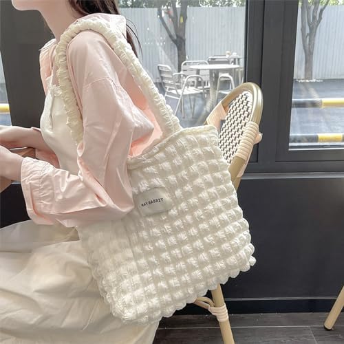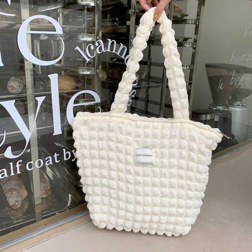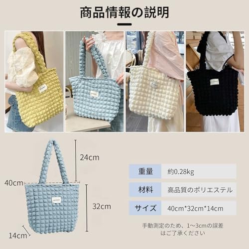 [happykau] ポップコーンバッグ トート キルティングバッグ レディース ショルダーバッグ シャーリング 可愛い 軽量 手提げ ファスナー付き おしゃれ 凸凹 通勤 通学 大容量