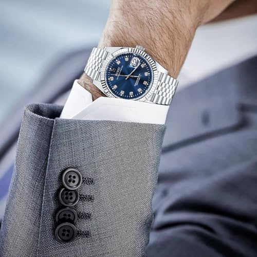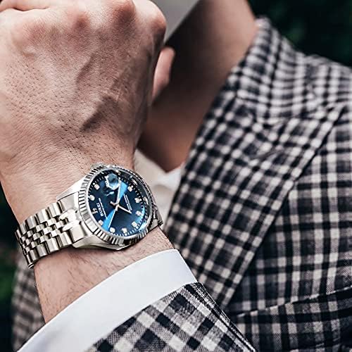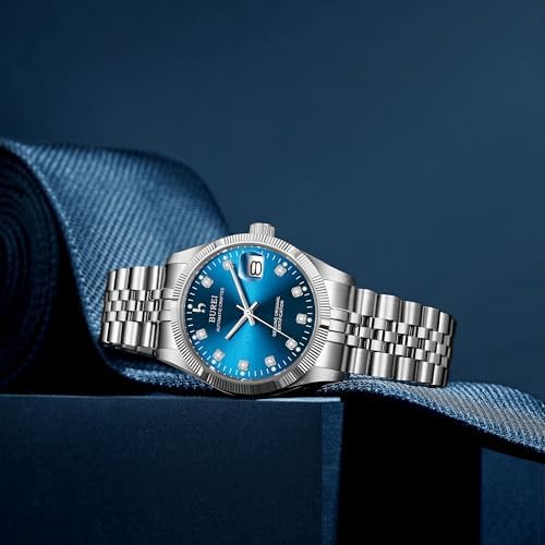 [BUREI]メンズ腕時計自動巻き 防水 アナログ 日付 機械式時計人気 男性 ブランド おしゃれ うで時計 シンプル カジュアル ディープブルーウォッチ