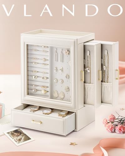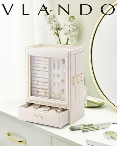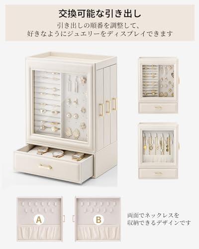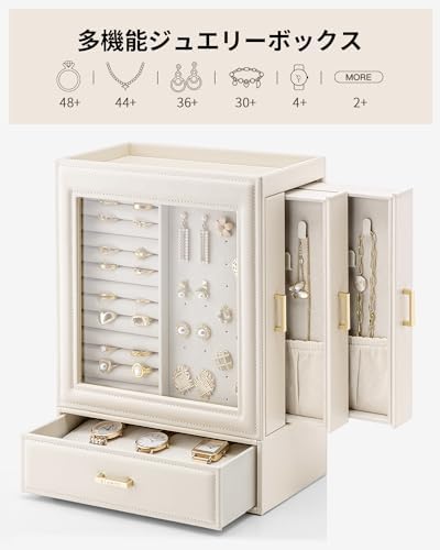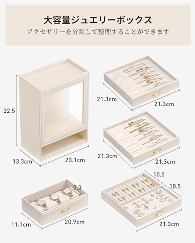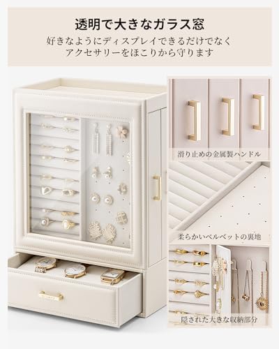Vlando 大容量 ジュエリーボックス 大容量 吊り下げ ガラス窓 ネックレス イヤリング リング ブレスレット 腕時計 ジュエリー 収納 ケース 誕生日プレゼント 母の日のギフト (オフホワイト)