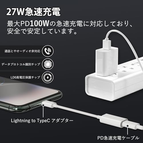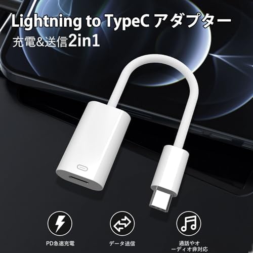 2024新版Lightning to Typec 変換アダプタ PD急速充電 データ転送 ライトニング to タイプ C 変換ケーブル USB C 変換コネクター ナイロン編組 対応iPhone 15、iPad Pro、iPad 10 、mini6 、Air 4、Air 5、MacBookなど機器 多機能使用 イヤホン非対応 ホワイト