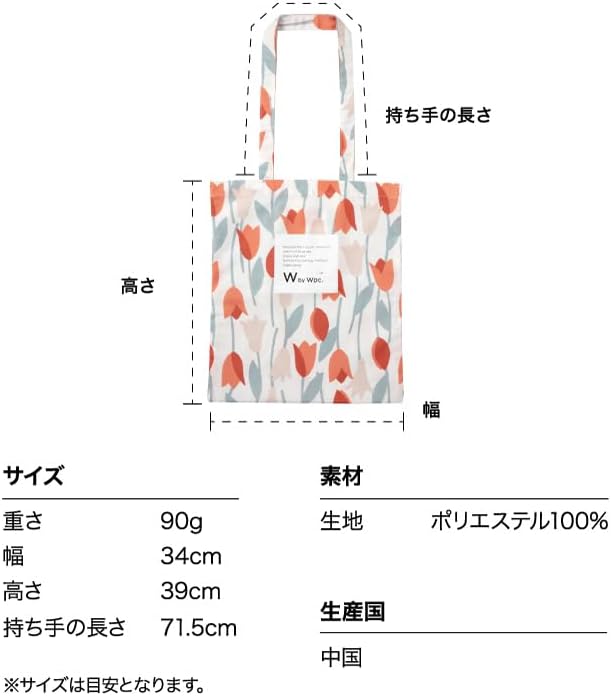 [ワールドパーティー] 2024 トートバッグ ブルーミングチューリップレッド はっ水 レディース バッグ エコバッグ サブバッグ コンパクト 折り畳める ポケット付き おしゃれ 可愛い 北欧 花柄 女性 通勤 通学 W108-331-204