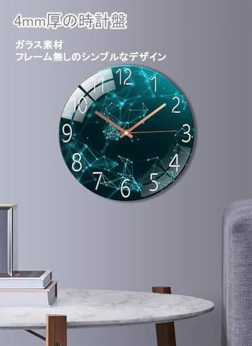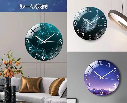 Icycow 掛け時計 フレームレスデザイン ガラスパネル おしゃれ インテリア 時計 壁掛け かけ時計 モダン 静音 連続秒針 星空 星宿 丸型 ウォールクロック デジタル 大数字 見やすい wall clock 12インチ living room 寝室 装飾(パープルスタースカイ)