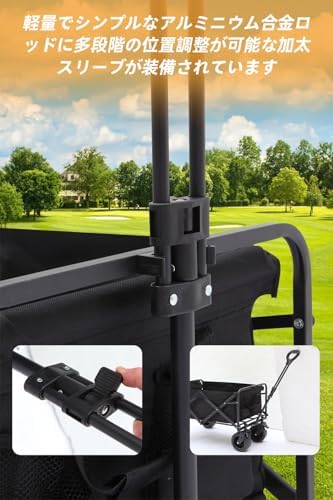 【Carry Long Luggage - Open Back】 The back of the carry cart can be easily opened by simply removing the buckles on both left and right sides. Stress-free carrying long camping gear that is difficult to use with a standard wagon, such as a freestanding hammock or tarp pole. In particular, when using a dedicated table for the wagon, the rear opening and closing feature allows you to easily access the items inside and move smoothly. In addition, this design also makes cleaning in the camp wagon convenient and even more convenient. For users, it is easy to carry long outdoor items Large Capacity & Incredibly Compact Storage: The ideal outdoor wagon boasts an amazing 230L capacity and a load capacity of 440.9 lbs (200 kg). It is an ideal choice for efficient carrying outdoor supplies, food and other essentials at once. The carrier is 34 cm tall and measures 75 cm deep x 46 cm wide x 48 cm high when stored: 47 cm deep x 14 cm wide x 66 cm high. This product is essential for outdoor activities such as camping and family picnics, and its large capacity yet compact design allows you to carry everything you need efficiently Multi-functional Large Tires & Brakes: This camping cart has extra-thick tires that are 6.7 inches (17 cm) in diameter and 3.9 inches (10 cm) in width, and the built-in bearings allow for a quiet and stable ride. Not only can it be used in flat areas, but it can also smoothly move uneven roads such as sandy beaches, gravel roads, and lawns. It has a unique brake function so you can rest assured even on slopes. Double front brake and oversized 360° swivel wheel (width: 10cm, diameter: 18cm) can be used on slopes, lawn, beach and even on uneven surfaces. The large removable tires can be stored space and can be changed at any time. Multi-functional carry cart with stable transport and braking convenience in all terrains Sturdy Design: The carry wagon uses an easy-to-use adjustable handle that can be stretched compactly when not in use. It is durable and has an amazing load capacity of 244.6 lbs (12Cart frame (thickness: 1mm), heavy duty tire bearings, hardened base plates (thickness: 4mm), and abrasion-resistant tires for added durability. The removable and easy-to-care construction allows for comfortable maintenance without worrying about staining after use. Sturdy frame made of steel tubular and 600D oxford cloth make it waterproof and durable, non-slip handle provides easy grip and maneuverability. This model has a longer life span than the market model, and can handle the toughest outdoor environments Portable & Convenient Storage: This carry wagon is ready to use without any assembly required. Easy to fold with just a pull, convenient to carry. Perfect for shopping and traveling, easy to transport your luggage and save time and effort. It can be stored freestanding with a single touch, and comes with a storage cover so you don't have to worry about dust. It does not get in the way when stored compactly, and can be used for vertical or horizontal display. Quick set up and fold down easily in 1 minute, this convenient carry wagon can efficiently store large items