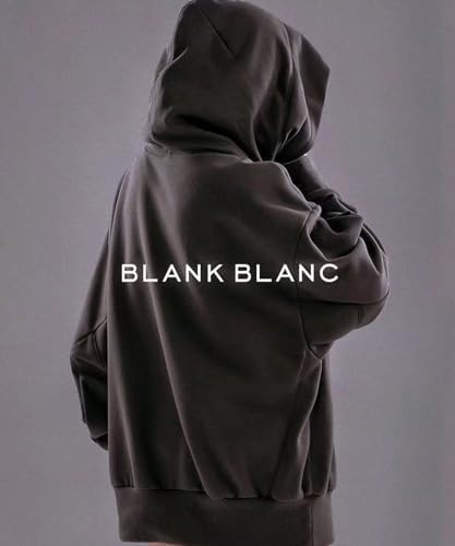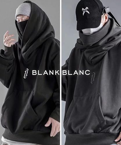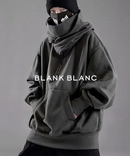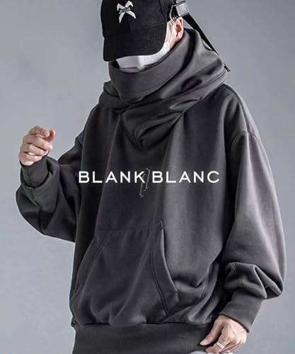 BLANK BLANC Men's Street Hoodie, High Neck, Korea, Solid, Oversized