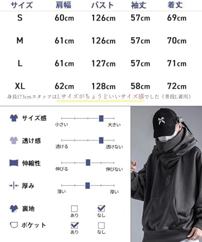 Introducing a hoodie with an innovative design that has never been designed around the neck. At first glance, the design of a mask or scarf is applied to the neck; The fabric is smooth and has a long time wear and a wide range of outfits. The length is not too long, so it is also recommended to show off your inner layer It is not a brushed type, so it can be worn in 3 seasons in spring, autumn, and winter. The neck scarf design is also similar in texture, so it will not overheat and gives off a sense of design. The body base has a simple gray and black design that can be worn alone or as an inner layer. This is a must-have item for those who are unsatisfied with their regular hoodies A piece that will compliment any style of bottoms. Pair with cargo pants or wide pants for an easy on-trend street style. Pair with skinny jeans and slacks for a clean and mode-like look. Pair it with shorts in the early summer for a mature look Great for spring, but also as a top for those seasons where it is difficult to choose clothes during early summer and early autumn. It looks great with riders, denim blousons and coats. Recommended for women who like a mens-like item. You can pair it with couples and friends. This one piece will expand your wardrobe options. Makes a great gift or gift. Guaranteed to please. You can also collect them in different colors Size: Shoulder width/Bust/Sleeve length/Length (S) 60/126/57/69 (M) 61/126/57/70 (L) 61/127/57/71 (XL) 62/128/58/72 *Measurements are taken with the garment laid flat, so there may be slight deviations #617,781 in Clothing, Shoes & Jewelry ( ) #3,660 in