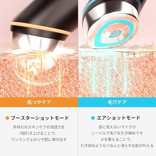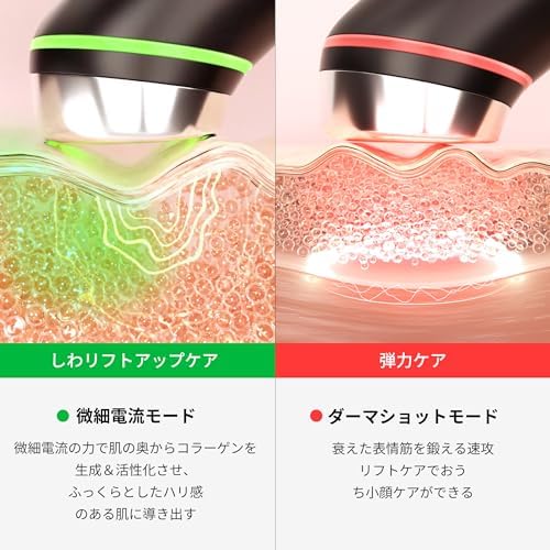 【6in1マルチケア美顔器】 4つのメインモード,ソニックバイブレーションと5種類の led機能 【トーニング肌つやケア : ブースターモード】グロウポレーションを従来より 安定的に実現したモードで 微細なホールを一時的に形成し 有効成分の浸透を最大化 【毛穴弾力ケア : エアショットモード】 従来のエアショットとは異なり、 片方の電極に触れるだけで 作動する ユニポレーション技術で 鼻周りや頬の 広がった毛穴の弾力をケアします 【輪郭弾力ケア : ダーマショットモード】表情筋に最適化した 中周波EMSを適用し 弾力を失った 筋肉を刺激して たるんだ輪郭をケアします 【しわリフトアップケア : 微細電流モード】 微細電流が肌の中のコラーゲン 生成を促進して 目元や口元のしわ、 ほうれい線に ボリューム感を与えます 【自宅で簡単にできるエステ級のトータルケア】 モバイルアプリで選べる最大40個のモードで毎日の肌悩みに合わせてカスタマイズする新感覚の美顔器