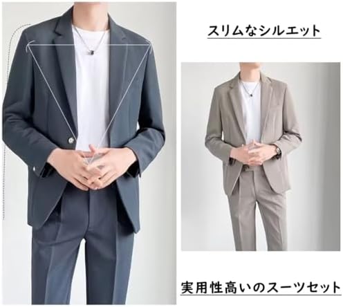(Compatible with Large Sizes) The chest pocket is faux and decorated. ★ Set Includes: Suit jacket + long pants. M: Estimated Height and Weight→160-165cm/50-60kg, L: Estimated Height and Weight→165-170cm/60-70kg, XL: Recommended Height and Weight→165-170cm/70-80kg, 2XL: Height&Weight→170-175cm/80-90kg, 3XL: Estimated Height and Weight→170kg. -175cm/175cm/20.5 - 220.5 lbs (90 - 100 kg), 4XL: Estimated Height and Weight→ 6.9 - 70.9 inches (175 - 180 cm), 220.5 - 24.6 lbs (110 - 120 kg) (Casual & Formal Suit Set) Can be used as both a suit jacket and a tailored jacket. Simple and solid color means you can match anything from shirt to white tee shirts One Button Design: The front is a one-button design, so it brings out your man's sexiness and creates a loose silhouette. Leisure casual style with a wide range of outfits, and a sense of presence. Simple design creates a sincere look. Practical and fashionable. This suit has been designed with attention to detail and is elegant and breathable. A two-piece jacket and slacks set Carefully Sewning: The attention to detail is given to the highest quality. A sophisticated adult suit set with a subtle and exquisite silhouette that exudes a good impression. Pockets on both sides of jacket for everyday use Combines casual suit and formal style Suitable for all occasions: The perfect thickness is a suit that is perfect for the coming season, and the exquisite silhouette has been calculated to show off your beautiful style. This fashionable top and bottom suit set is suitable for a variety of occasions, such as school entrance ceremonies, graduations, dates, weddings, reunions, weddings, after parties, eating, gatherings, celebrations, and parties, commuting to work or work, business occasions, interviews, visitors, concerts, piano recitals, stage costumes, and ceremonies #32,783 in Clothing, Shoes & Jewelry ( ) #19 in