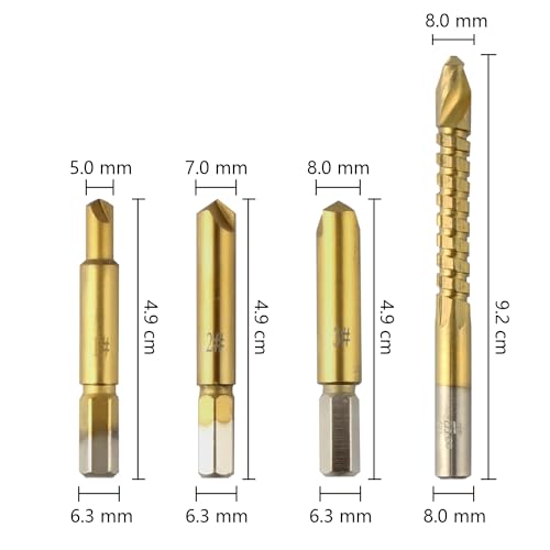 YUENTOEN 3PCSスクリューエクストラクターセンタードリル なめたネジはずしビット 6.35mm六角軸 エキストラクター サイズ1# 2# 3#と1PCS 鋸歯状ドリル 穴あけおよびスロット 8mm丸軸 ネジ外し つぶれたねじ取りなめたネジ外し工具
