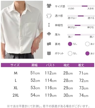 A blouse with a simple and loose silhouette that creates a mature and loose look. The material is smooth and stress-free even when worn for a long time. The simple design is easy to match with any outfit. The fabric and stitching are carefully selected to make it easy to mix and match. Just wear this blouse to show off your man's charm just by wearing one piece, so you can complete a beautiful adult outfit. A versatile men's item for all occasions It is moderately thin and highly breathable, and it dries quickly after absorbing sweat and dries quickly, and has excellent water absorption and quick-drying properties, making it a must-have item for hot weather. Although it is usually half sleeve, it comes with a roll-up drawstring, so it can be transformed into a short sleeve and is easy to use and has a beautiful shape for details. The convenient left chest pocket can hold small items such as a mask, cell phone, or key case, so it can be used when you want to go out with your hands This blouse has a loose silhouette that gives off a fashionable and loose impression, and goes well with bottoms. Pair with denim or chino pants for a casual look. Pair with skinny pants or slacks for an adult elegant look. Just open the front button and put it on for a stylish look. It is very convenient for a wide range of occasions such as commuting to work or school, work clothes, outdoor activities, leisure, driving, traveling, going out, loungewear, pajamas, loungewear, etc Available in 3 basic colors that are easy to mix and match. Both of these classic colors are easy to use, so we recommend you stock items in different colors to suit your season, mood, and outfit. Depending on how you wear it, the atmosphere can be changed so you can wear it for any season. This classic men's item can be worn by many people regardless of the wearer, so it can be worn by people of a wide range of ages, including teens, 20s, 30s, 40s, 50s, and 60s. It is convenient to have one piece, making it a great gift or gift Size: Shoulder width/Bust/Sleeve length/Length (cm) (M) 51/112/28/71 (L) 52/114/28/72 (XL) 53/116/29/73 (2XL) 54/119/30/74 *Measurements are taken when laid flat, so there may be slight deviations #275,012 in Clothing, Shoes & Jewelry ( ) #2,321 in #85,537 in