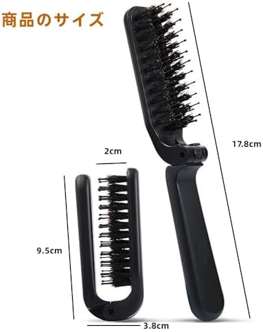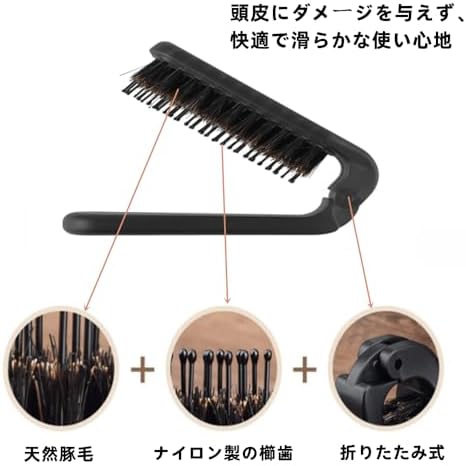 ヘアブラシ 豚毛 櫛 くし 頭皮マッサージ 折りたたみ 静電気防止 持ち運びに便利なコーム 髪質改善 つやサラ美髪 髪 ヘアケア 男女兼用 すべての髪質に合う ブラック