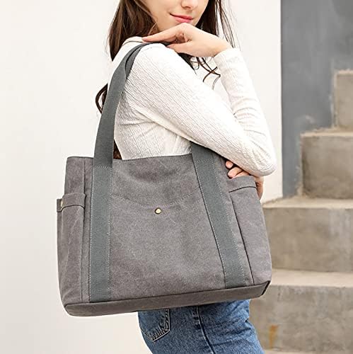 [hvreiop] トートバッグ レディース キャンバス ハンドバッグ 多収納ポケット 大きめ 肩掛けバッグ 大容量 多機能 マザーズバッグ 無地 シンプル 肩がけバッグ 横長 便利 丈夫 通学 仕事 旅行 アウトドア 出張 お出かけ プレゼント