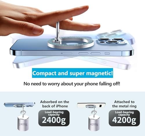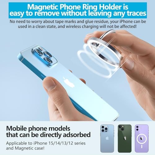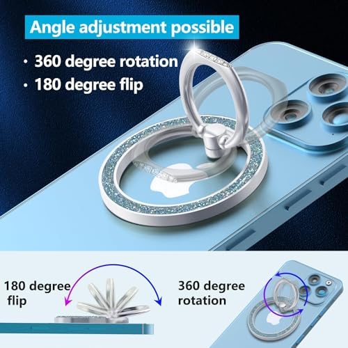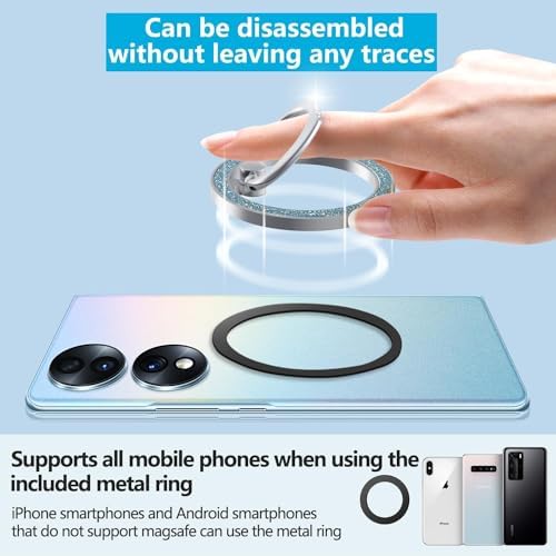 スマホリング MagSafe対応 リング マグネット式 携帯電話 ホルダーリング, マグセーフ バンカーリング, 360°回転 180°角度調整可能 強力磁石付き 丸型 落下防止 片手操作可能 メタルリング付き 取り外し可能 iPhone 15 / 14 / 13 / 12 シリーズ対応 (ライトブルー)