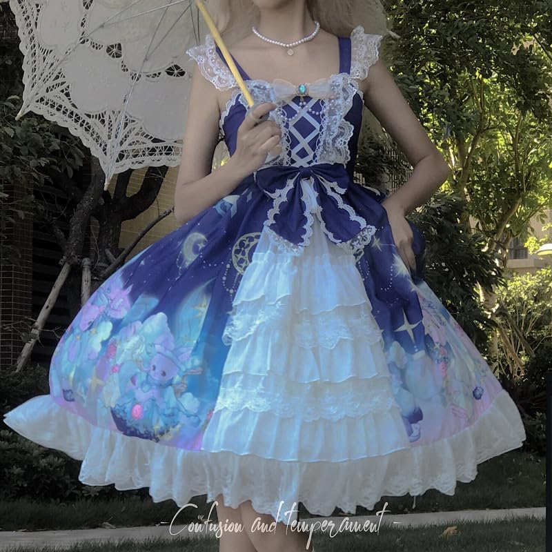 [JIURUN] スリップスカート ワンピース 仮装 森ガール 女の子 リボン 女装 ロリータ かわいい 萌え 甘ロリ 夏日 お茶会 超キュートパーティー 撮影 文化祭 デート
