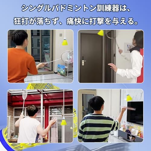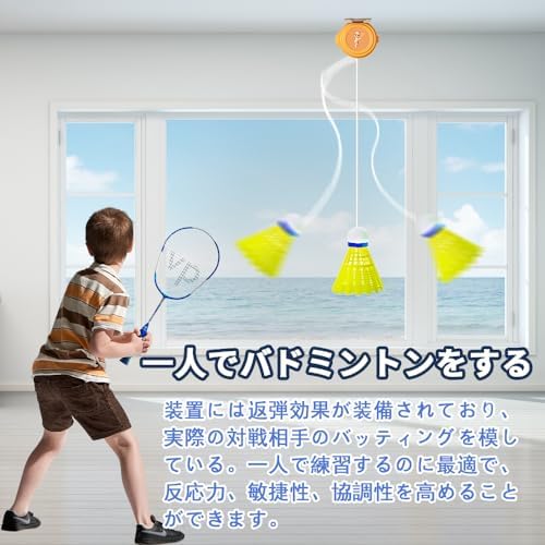 KASELIN 室内バドミントンセット 1人バドミントン 自動リバウンド 練習器具 家での練習 バウンド練習補助 愛好者対応 自己粘着 吊り下げ 持ち運びに 便利 軽量 弾性 初心者 3球付き/6球付き