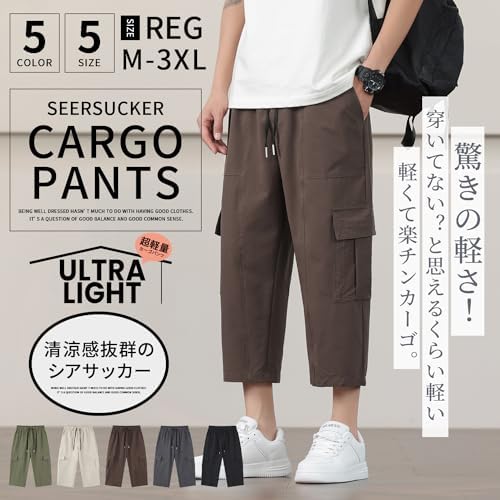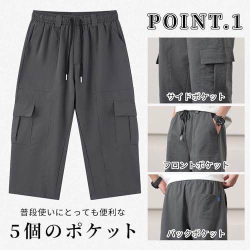 [Fasshonrida] カーゴパンツ メンズ 7分丈 半ズボン カジュアル ボトムス パンツ ドライ 速乾 サルエルパンツ ストレッチ シアサッカー 七部丈 ショートパンツ おしゃれ ひざ下 ハーフパンツ 軽量 涼しい イージー クロップドパンツ 春 夏