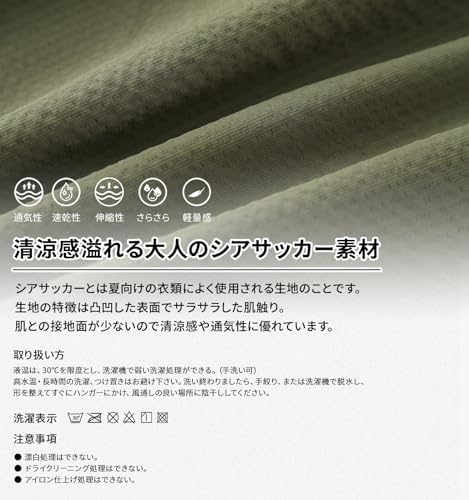 どんなトップスでも合わせやすいのがポイントのカーゴクロップドパンツの登場です!フロント部分に切り替えステッチに仕上げることで、立体感が増し、ごつっとした無骨な男らしさを実現。美シルエットを追求し、カーゴポケットのバランスにこだわったラインです。両サイドのカーゴポケットはマチ無しでスッキリと仕上げました。バックポケットは右側のみのシンプルなデザイン。前開きには開閉が滑らかで壊れにくいYKKファスナーを採用。さらにウエスト部分はゴムで調節ヒモがついているので、ベルトいらずで動きやすく楽に穿くことができます◎『※ ウエスト前部にあるループは単なる飾りになり、ベルトループではありません。』 夏の衣類によく使用されるシアサッカーの特徴は凸凹した生地表面。シアサッカーは肌との接地面が少ないので、通気性があります。サラッとした肌触りも清涼感があり、風通しが良くて熱気がこもりにくいので、夏場に嬉しい素材です。シアサッカーの表面は交互に凹凸状に波打っていて、他の生地では出せない雰囲気を演出! ストレッチが効いた7分丈のカーゴパンツ!もちろん体を冷やす効果はありませんが、湿気や汗を素早く吸収し、迅速に乾燥させる特殊な素材で、暑い夏の季節のスポーツやレジャーシーンでも快適さを提供します。クロップドパンツなので、足元の抜けでこなれ感や軽快感を演出できショートパンツほどラフになり過ぎず、ロングパンツよりも軽やかにキマります。蒸し暑い夏を快適、洒脱に過ごせる一本です! シアサッカーは元々シワになっている生地です。生地特有のシボ感があるので洗濯してもシワが目立ちにくいですし、なんだったらアイロンかけない方がいいです。乾いたらそのまま着られるのはメリットといえそうです。ご自宅で簡単にお手入れできるイージーケア対応ボトムス! 【お客様へのお約束】 当店はお客様に最高のショッピング体験をお楽しみいただけますよう、最高水準のサービスを提供することをお約束します。当店でお買い物の際、何かご不明な点がございましたら、メールにてお気軽にお問い合わせください。お客様に問題なくお買い物をお楽しみいただけるよう、最善を尽くします。ご来店を心よりお待ち申し上げております。※ 不良品のほうはすべて返品・返金できます。お客様のみなさま安心して衣類をお選びください! - 4,707位ファッション ( ) - 50位