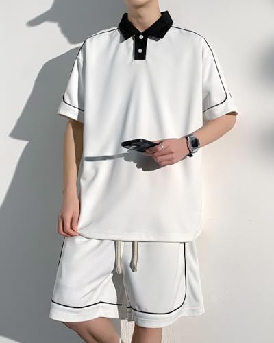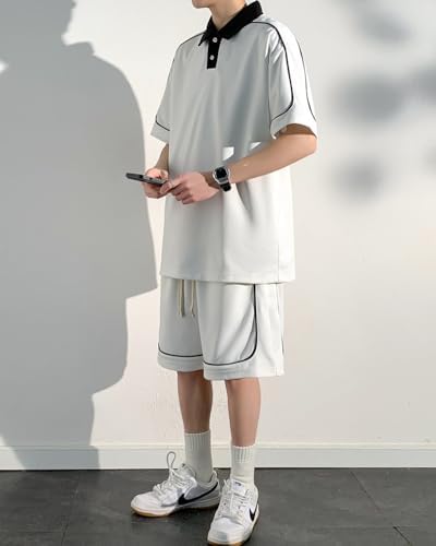 FJLTDCP Men's Summer Jersey, Top and Bottom Set, Short Sleeve, Polo Shirt, Top, Half Pants, Casual, Large Size, Cool, Breathable, Thin, Comfortable, Cool, Stylish, 2-Piece Set, Men's, Summer
