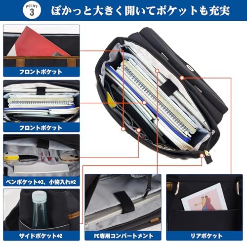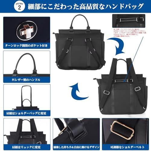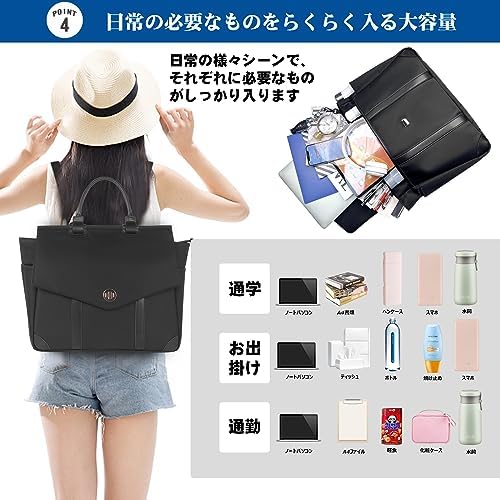 [OPOALO] 4way リュック レディース 大容量 15.6インチPC収納 ハンドバッグ ショルダーバッグ A4対応 バックパック 撥水加工 出張 旅行 通学 通勤 12ポケット 20L キーホルダー付き