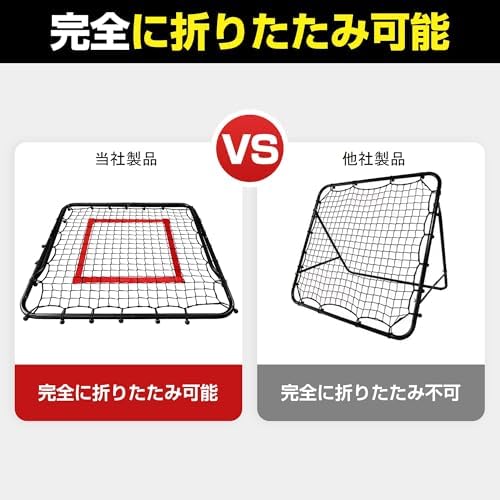 【当店特典】 ネットとゴムフック2年保証(当店は日本国内の会社が直接運営を行っております)。万が一破れ等の不具合がございましたら迅速に対応させて頂きますのでご安心してお買い求めください。連絡方法[販売者名クリック→対斉株式会社に質問する]よりメールにてご連絡頂けますと2年間無償交換をさせて頂きます)。 【簡単組み立てでどこでも利用可能】 このアイテムは、ご自宅やお庭、ガレージなどの屋内で簡単に設置できます。また、コミュニティ、学校、公園などの屋外でも最適です。 【頑丈で安定感抜群】 頑丈なスチール製フレームと弾力性、耐候性に優れたネットを採用しており、長期間使用できます。付属のペグで地面に固定すれば、安定感が良く倒れる心配はありません。 【角度調節可能】 フレームは角度調節ができ、様々なスポーツのテクニックを練習し、スキルを素早く習得できます。一人での練習も可能であり、キックやトラップ、パスの反復練習にも最適です。リバウンドボールを蹴り続けることで技術力や集中力の向上が期待できます。 【様々なスポーツに対応】 野球、テニス、サッカー、ソフトボール、ホッケー、ゴルフ、バドミントンなどの球技スポーツにも対応しています。ご自宅での壁打ちやキックの練習はもちろん、本格的なシュート練習などにもご利用いただけます。 【セット内容】フレーム、ネット、ゴムフック、ペグ、組立説明書