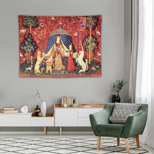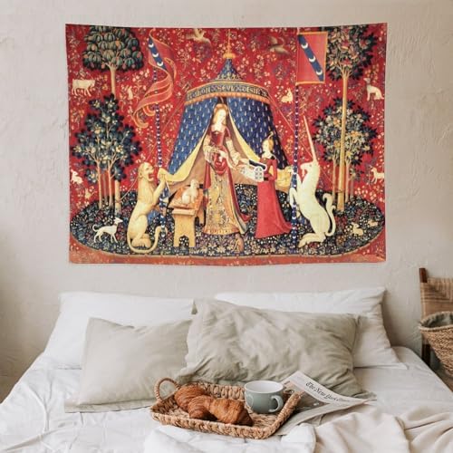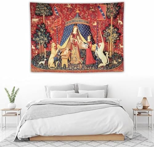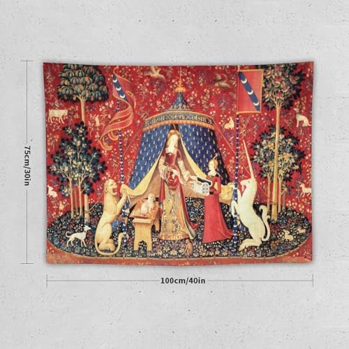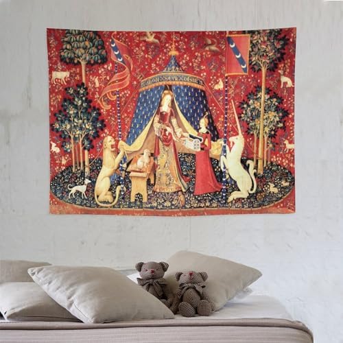 タペストリー 貴婦人と一角獣私の唯一の欲望 壁掛け 大判 布ポスター 多機能 おしゃれ インテリア モダンなアート 背景布 窓カーテン ウォールアート ホーム装飾 絵画 装飾用品 かわいい 新居祝い 30"x40"